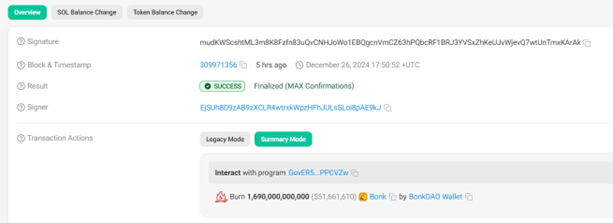 代币销毁:是将部分流通代币转入黑洞地址,比如BONK的链上每日销毁。