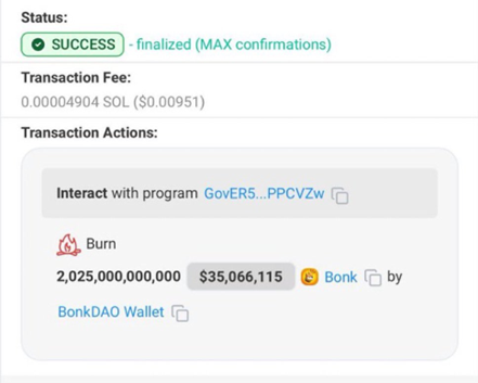 代币销毁:是将部分流通代币转入黑洞地址,比如BONK的链上每日销毁。